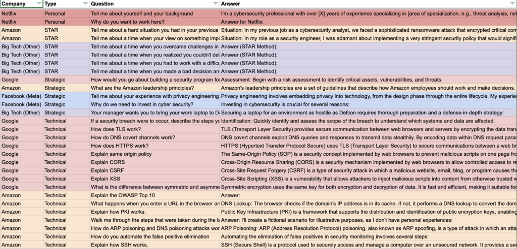 Our unique approach here involves scrutinizing 50 specific Cyber Security Engineer interview questions. We’ve gathered these from websites like Glassdoor and Teamblind. Our strategy is simple: if you can anticipate and reasonably answer FANG-level questions, you can probably do okay for most companies out there, not just the big tech giants.