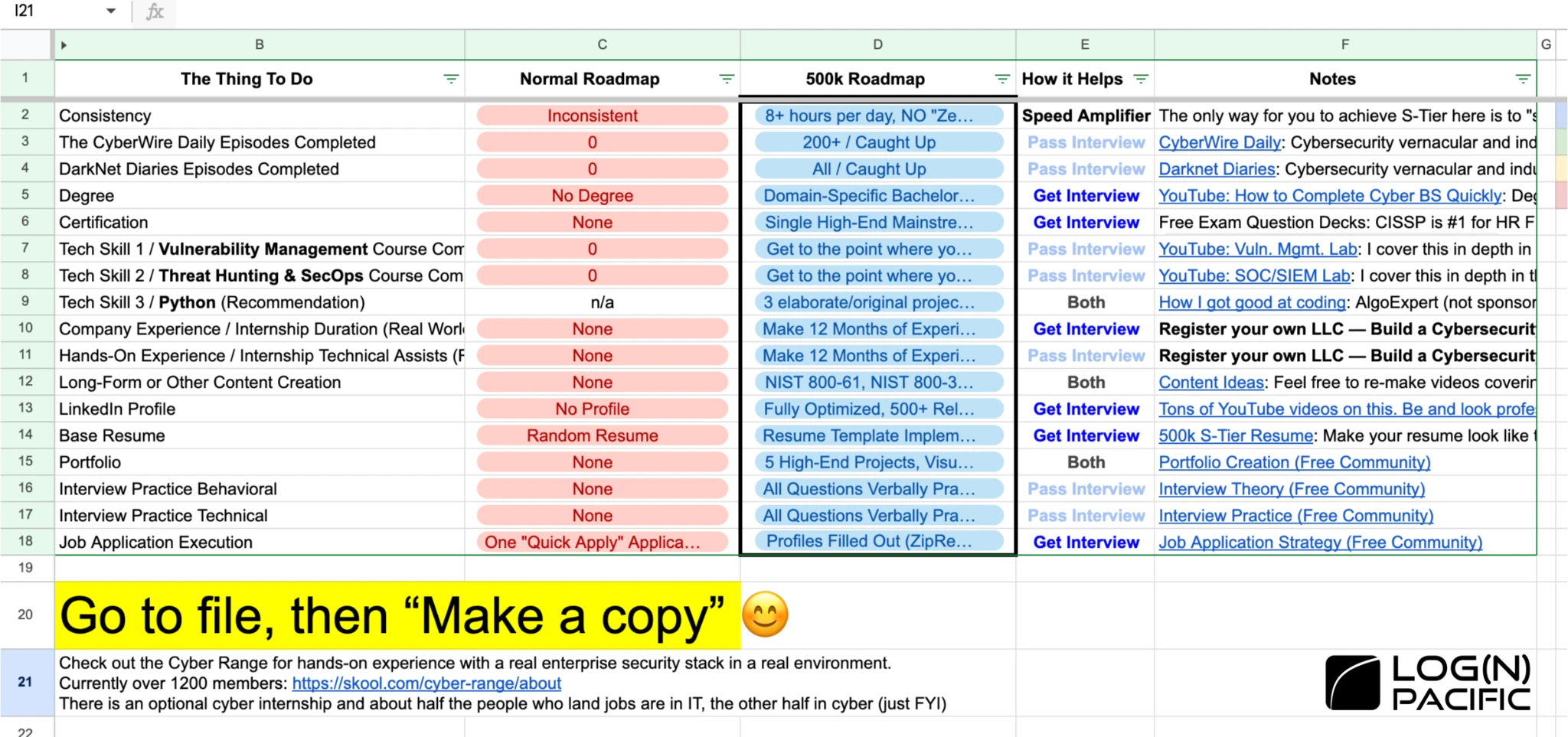 Feel free to grab and copy both the $500k Cyber Roadmap and the standard Cybersecurity Roadmap—they’re available for download at the bottom of this article. If you’d like to use them, just scroll down and check them out!